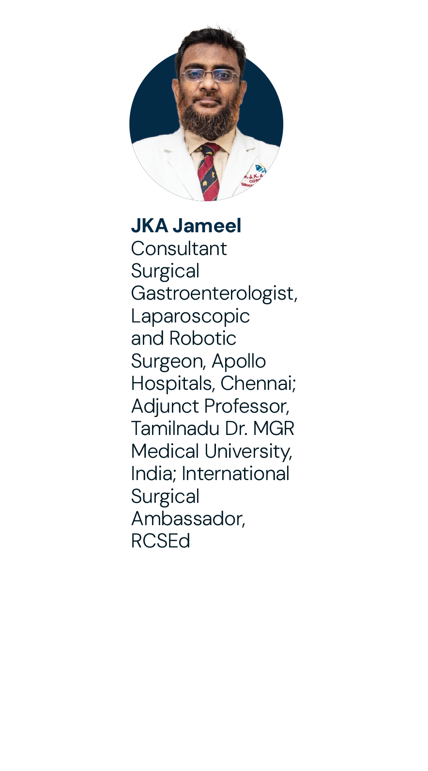 I would like to thank M Muralidharan, Director of Medical Education, Apollo Hospitals, and Sai Krishna Vittal, RCSEd Council Member, for their guidance and encouragement. My heartfelt gratitude and thanks go to the management of Apollo Hospitals, whose wholehearted support helped bring this RCSEd-accredited course to Chennai. Apollo Hospitals has consistently demonstrated a deep commitment to the advancement of medical education and surgical training. With world-class infrastructure, an active simulation centre and a culture that fosters continuous learning, Apollo Hospitals continues to be at the forefront of nurturing surgical talent and innovation in India.